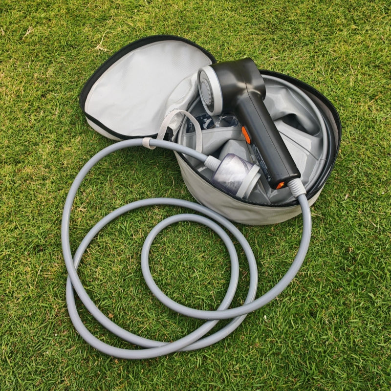 Main Body: ABS ; Shower Head: Stainless Steel Water Inlet Tube: Silicone + ABS Power Supply: DC Battery: 18650 * 3.7V / 2500mAh Charging Time: 2.5 H Charging Current: 5V ~ 1A Power Consumption: 6.8W Water Flow Rate: 2L/min Size: 23.2 × 7.5 × 83 cm Weight: 0.33 kg Noise Level (at 1m): 55 dB Low Mode: 70 minutes Strong Mode: 90 minutes Water Outlet Aperture: 0.3 mm Lift Height: 1.5 m Suction Height: 2 m High Brightness (Level 1): 140 lm Power: 1.2W Low Brightness: 70 lm Power: 0.8W Waterproof level - IPX6 Supports use while charging